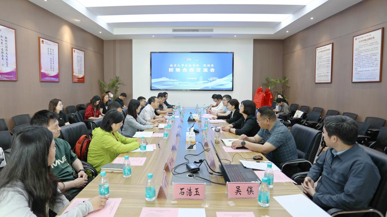 王建富与建湖县委组织部副部长、县委人才办主任孙盘桧共同为“党建协同育人基地”揭牌,吴愈晓和院友企业匠工营国规划设计有限公司常务副总经理石浩玉共同为“学生实习实践基地暨建湖文旅融合实验室”揭牌。校地企三方将以活动联办、资源共享、优势互补为原则,推动党的建设、人才培养、科技创新等方面合作再上新台阶。